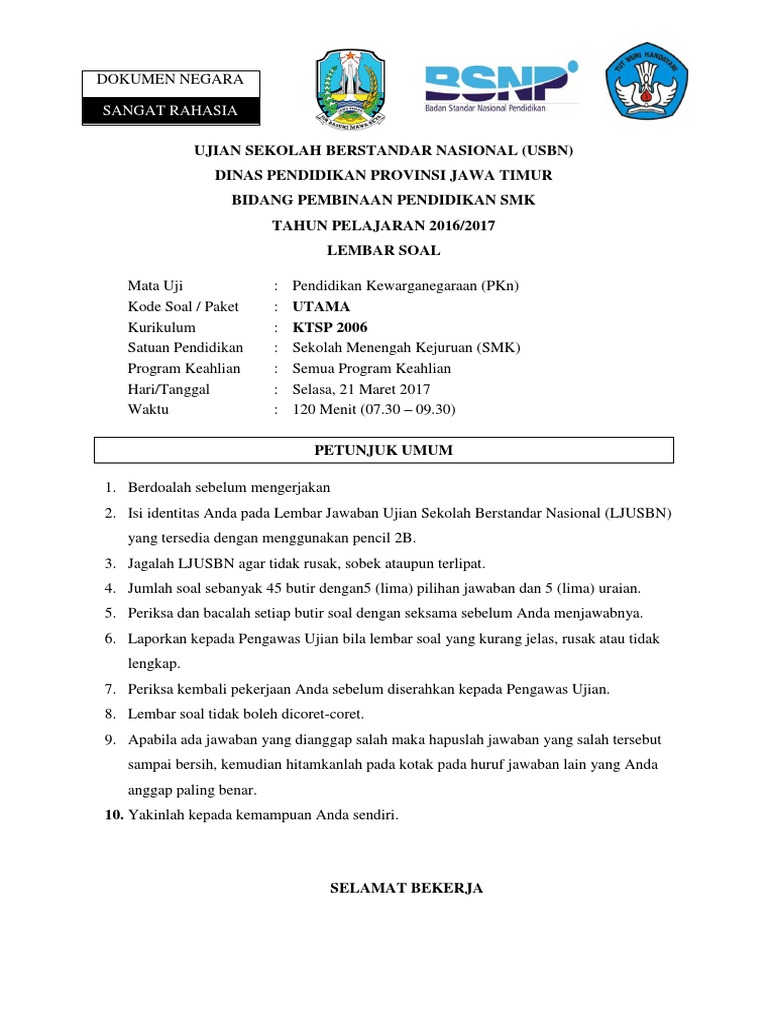 Download soal usbn pkn smk 2017 pdf. Apr 26 2020 Download soal usbn sma 2017. Soal soal usbn 2017 sendiri terdiri dari 30 soal dari provinsi dan 70 soal dari daerah kabupaten kota. Download Full PDF Package.