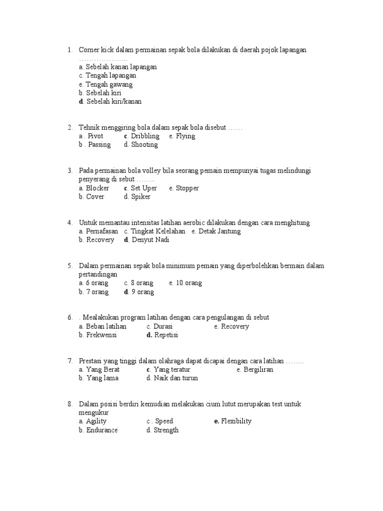 Kumpulan Soal Penjas 50 Soal Berserta Jawaban 2