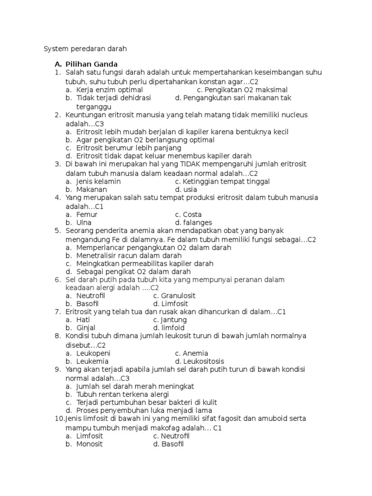 Latihan Soal Sistem Peredaran Darah Manusia Kelas 8 Smp Doc
